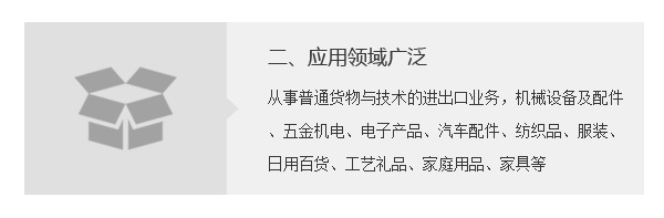 公司主營業務有:從事普通貨物與技術的進出口業務,機械設備及配件、五金機電、電子產品、汽車配件、紡織品、服裝...